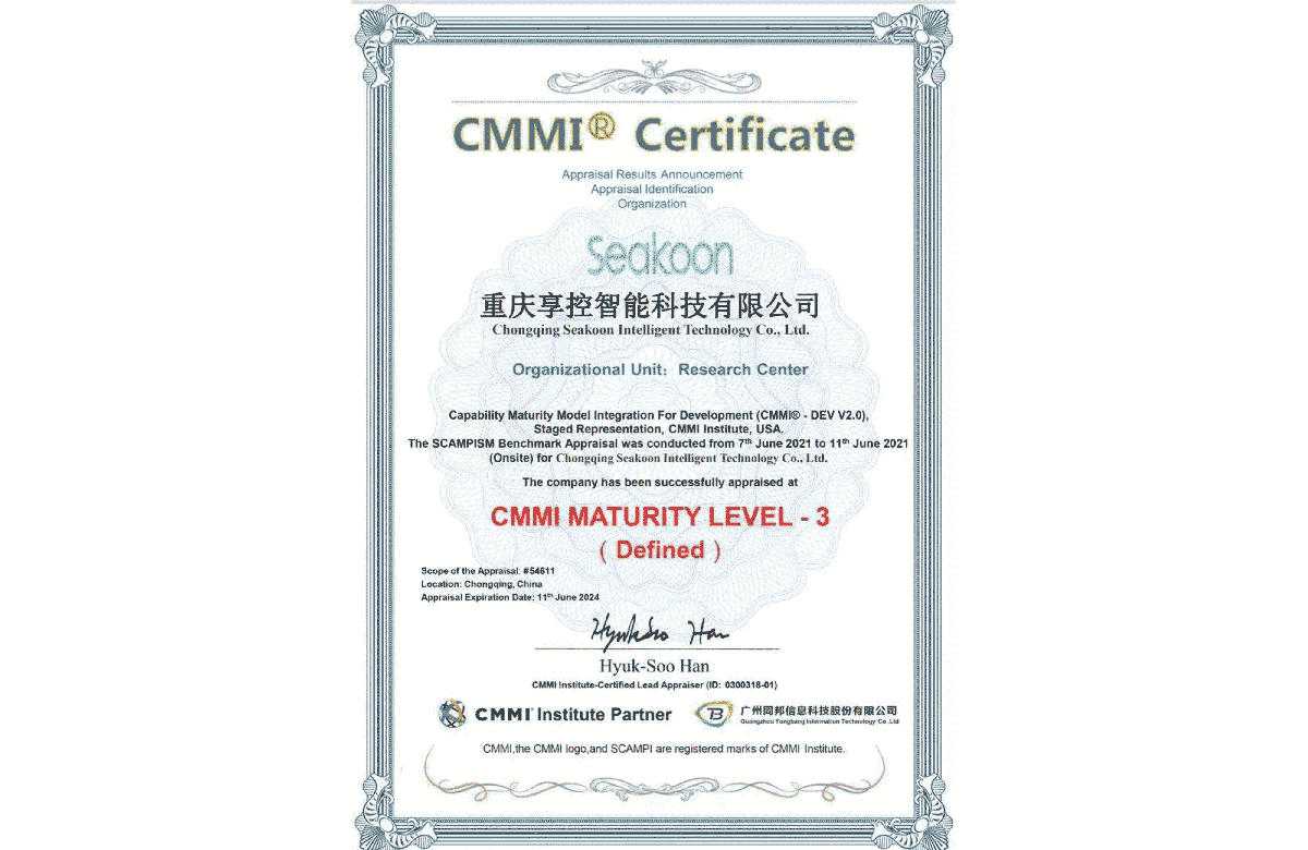 獲CMMI認(rèn)證證書